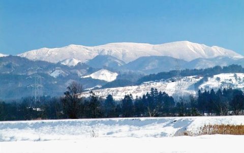 白鳥の飛来地(飯豊町)から撮りました。 2001.12.24 AM10